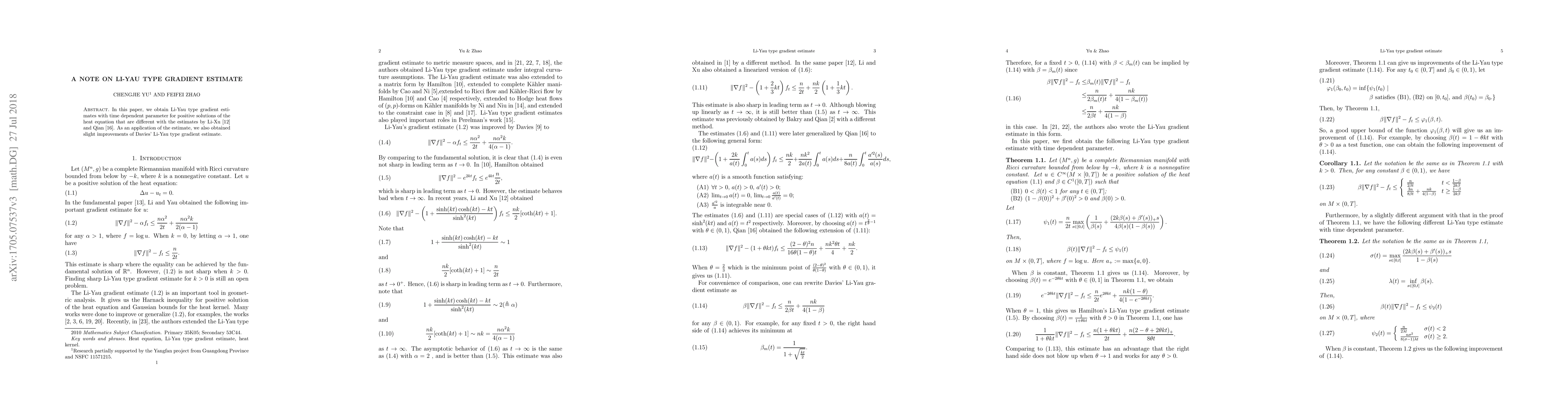 Summary: This paper presents novel Li-Yau type gradient estimates for positive heat equation solutions with a time-dependent parameter, differing from previous works by Li-Xu and Qian, and improves Davies' Li-Yau gradient estimate.