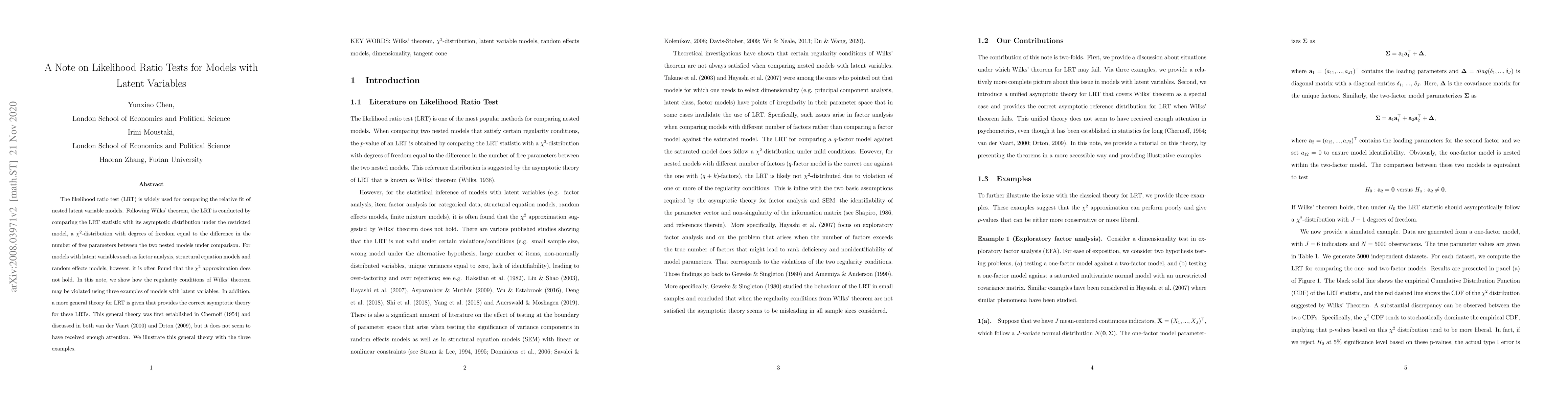 A research paper critiques the likelihood ratio test for models with latent variables, finding that Wilks' theorem's regularity conditions are often violated, leading to inaccurate asymptotic distributions. A more general theory is proposed to provide correct asymptotic theory for these LRTs.