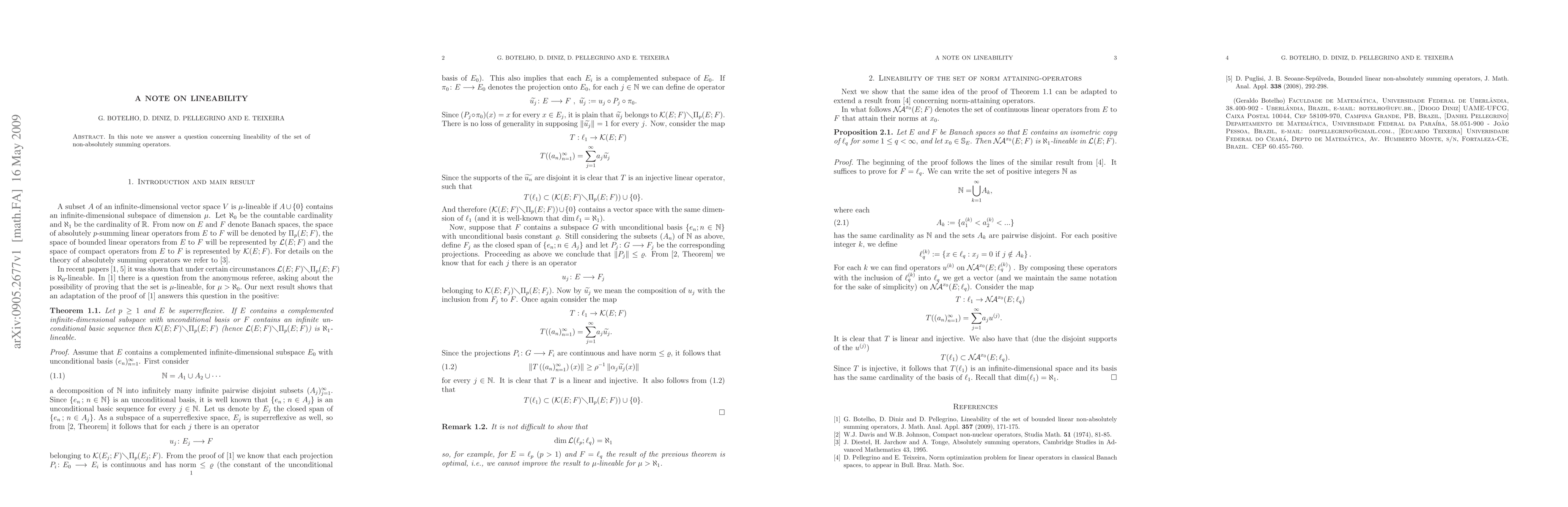 In this note we answer a question concerning lineability of the set of non-absolutely summing operators.