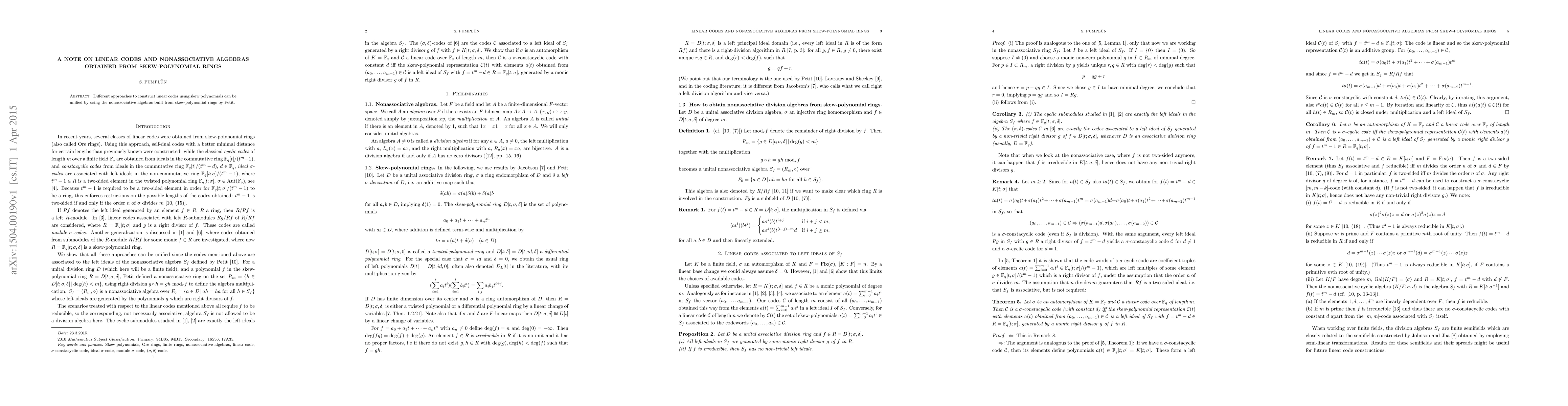Summary: This paper unifies various methods for constructing linear codes via skew polynomials by leveraging nonassociative algebras derived from skew-polynomial rings, as introduced by Petit. The focus is on the relationship between linear codes and the algebraic structures of these nonassociative algebras.