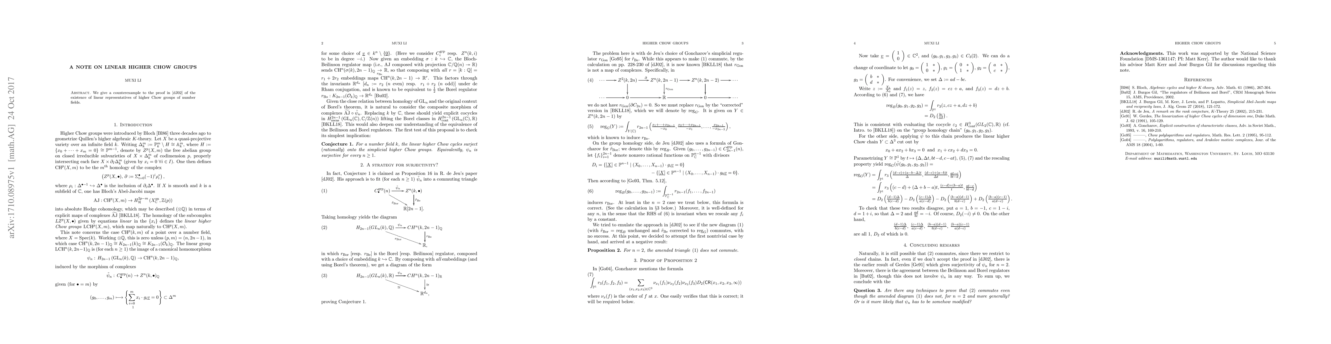 We give a counterexample to the proof in the literature [K-Theory 25 (2002), 215-231] of the existence of linear representatives of higher Chow groups of number fields.