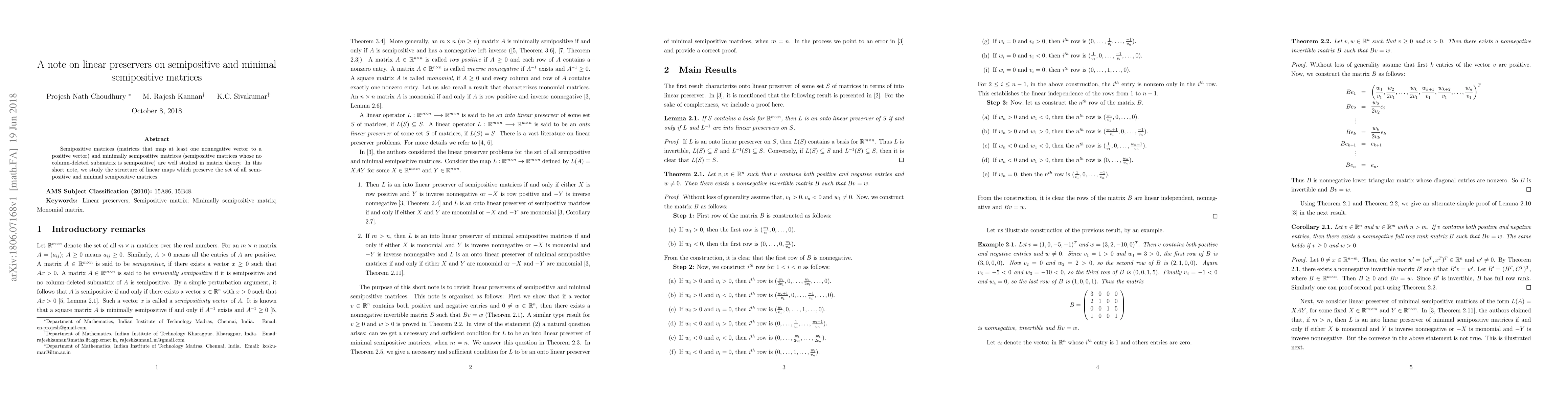 This paper investigates linear maps that maintain the set of semipositive and minimal semipositive matrices, exploring their structural properties and implications in matrix theory. The study aims to understand the characteristics of such linear preservers.