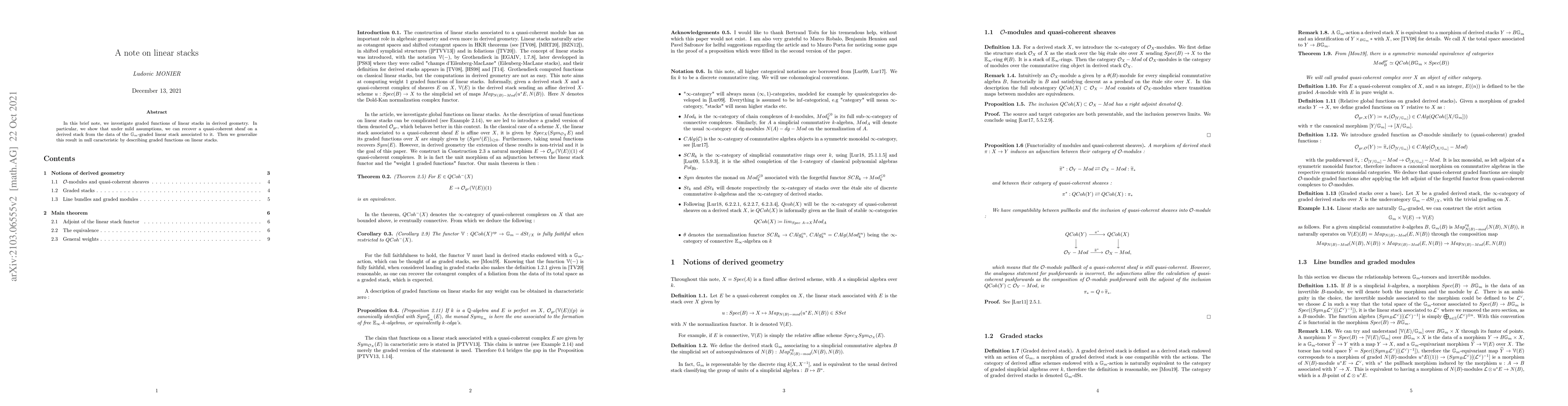 This research explores graded functions in the context of linear stacks within derived geometry, demonstrating that a quasi-coherent sheaf on a derived stack can be reconstructed from its associated $\mathbb{G}_m$-graded linear stack under mild conditions, and extends these findings to null characteristic settings.