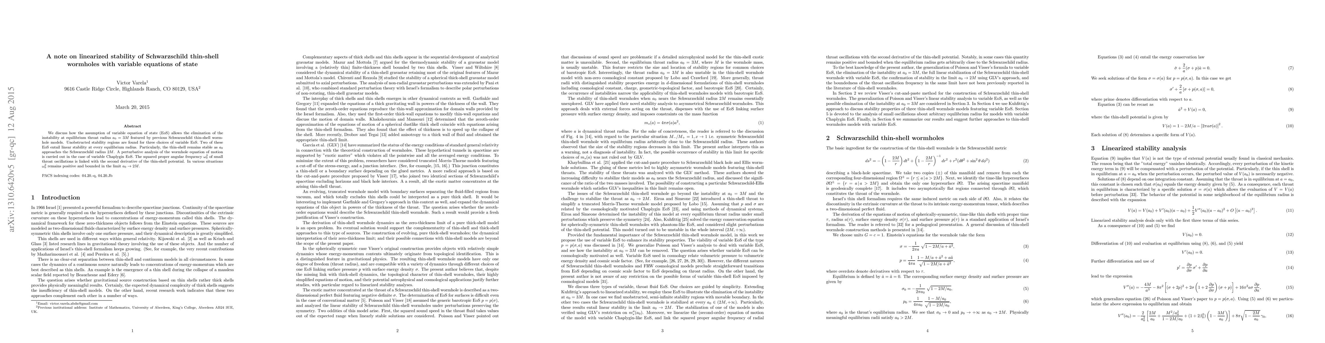 This paper examines the stability of Schwarzschild thin-shell wormholes under variable equations of state, demonstrating that variable EoS can eliminate the instability at $a_0=3M$. It finds stable regions for three EoS choices, with two ensuring linear stability at all equilibrium radii, including as $a_0$ approaches $2M$.