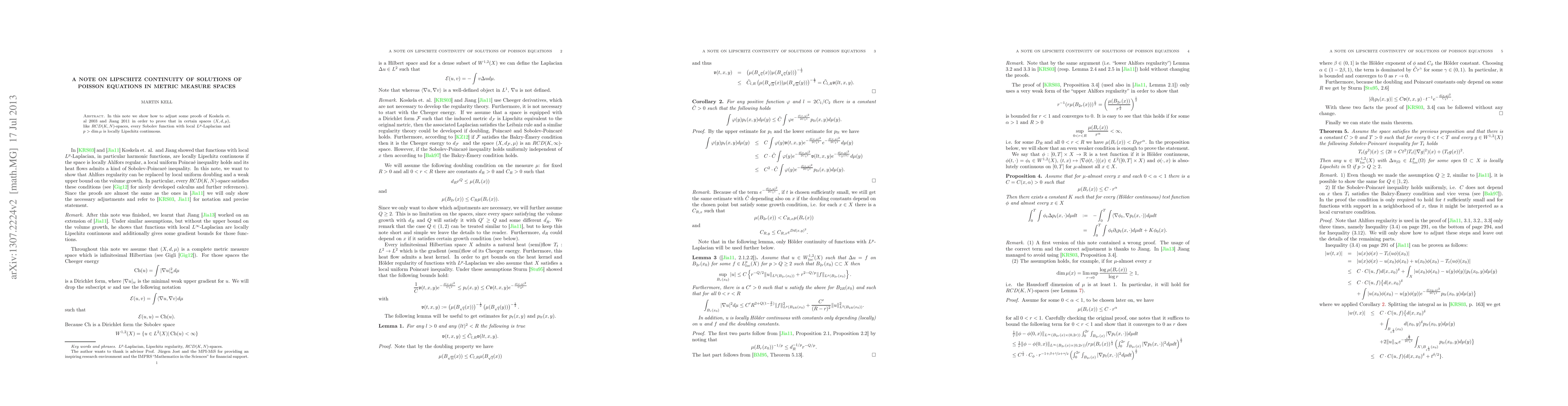 In this note we show how to adjust some proofs of Koskela et. al 2003 and Jiang 2011 in order to show that in certain spaces $(X,d,\mu)$, like $RCD(K,N)$-spaces, every Sobolev function with local $L^{p}$-Laplacian and $p>\dim\mu$ is locally Lipschitz continuous.
