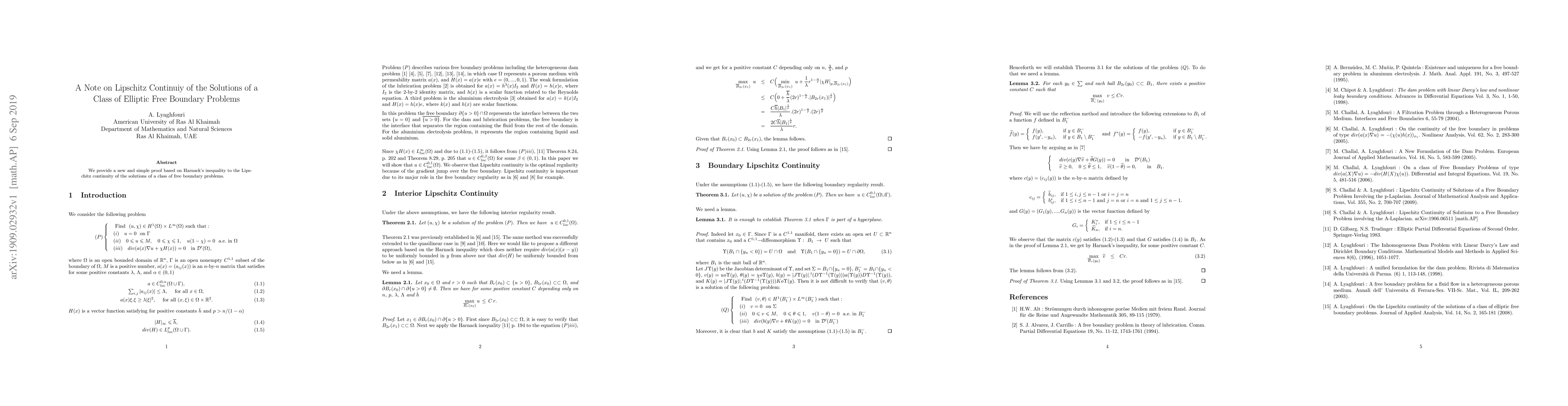 Summary: This paper presents a straightforward proof of Lipschitz continuity for solutions of a class of elliptic free boundary problems, utilizing Harnack's inequality. The method offers a new perspective on the stability of these solutions.
