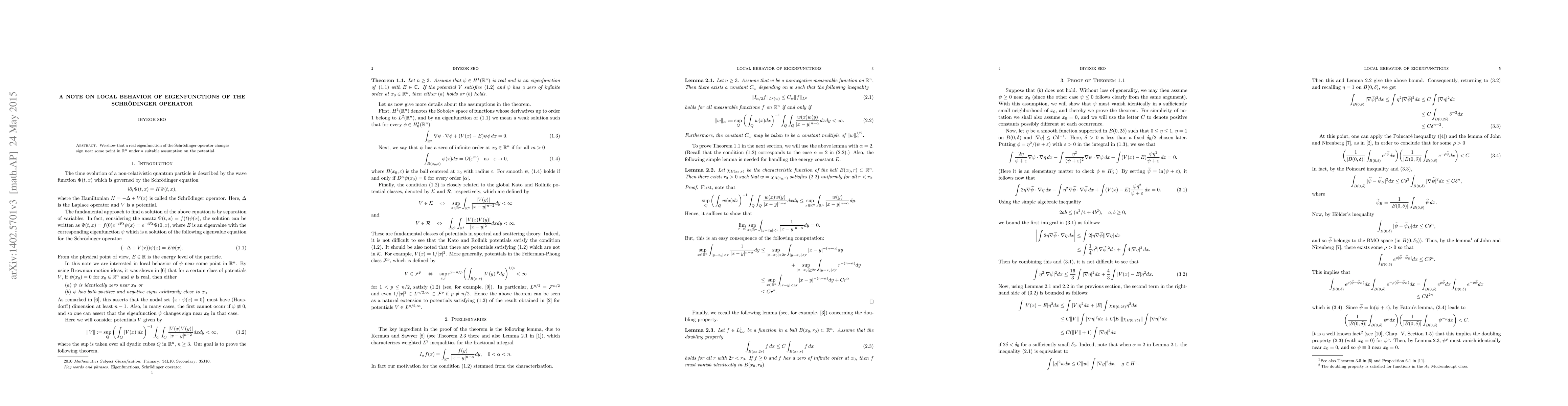 We show that a real eigenfunction of the Schr\"odinger operator changes sign near some point in $\mathbb{R}^n$ under a suitable assumption on the potential.