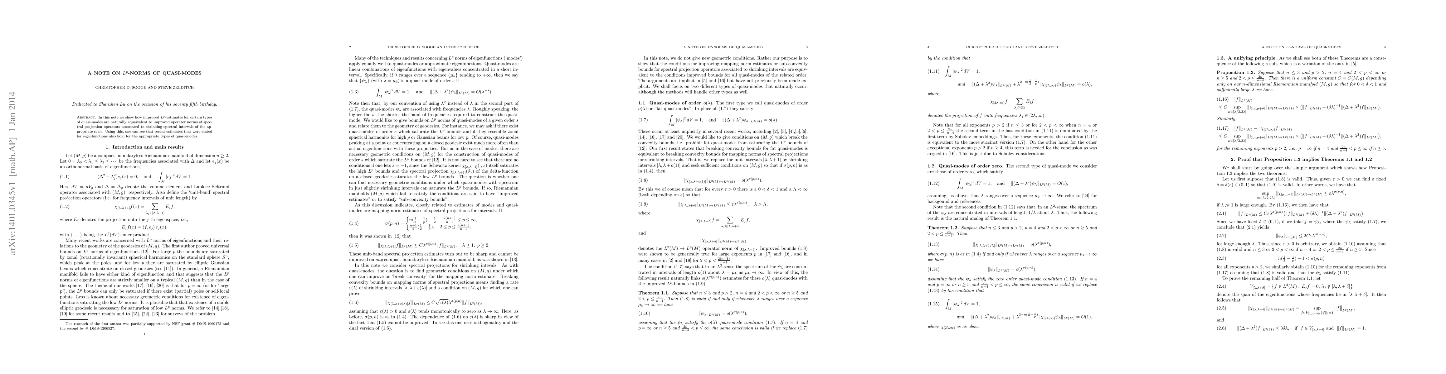 In this note we show how improved $L^p$-estimates for certain types of quasi-modes are naturally equaivalent to improved operator norms of spectral projection operators associated to shrinking spectral intervals of the appropriate scale. Using this, one can see that recent estimates that were stated for eigenfunctions also hold for the appropriate types of quasi-modes.