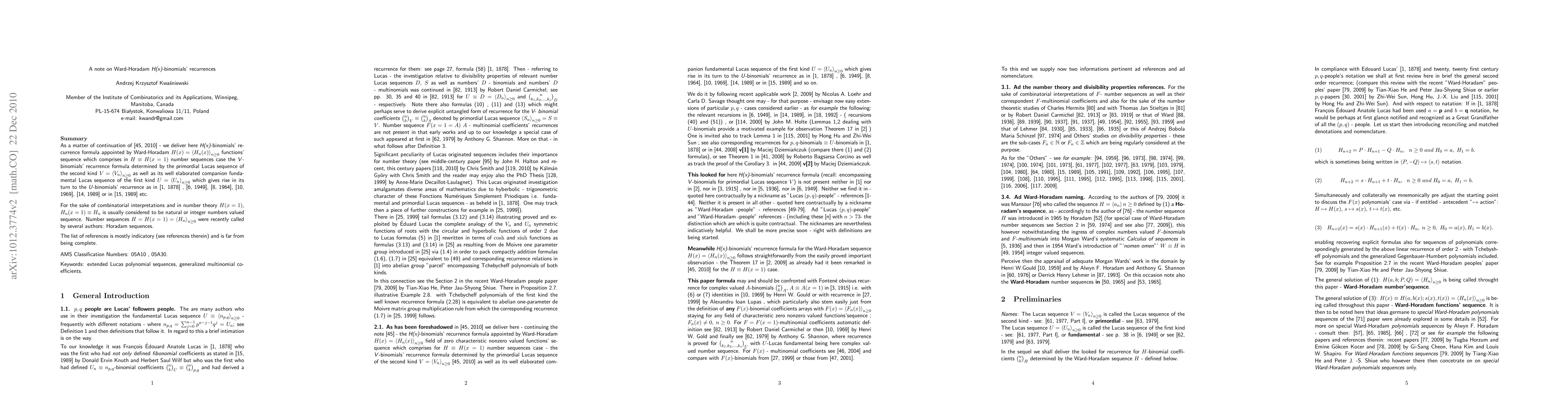 Summary: This paper presents a recurrence formula for H(x) binomials associated with the Ward Horadam sequence, emphasizing their polynomial nature and long-standing significance in mathematical studies. The focus is on the recurrence relations that define these binomials.