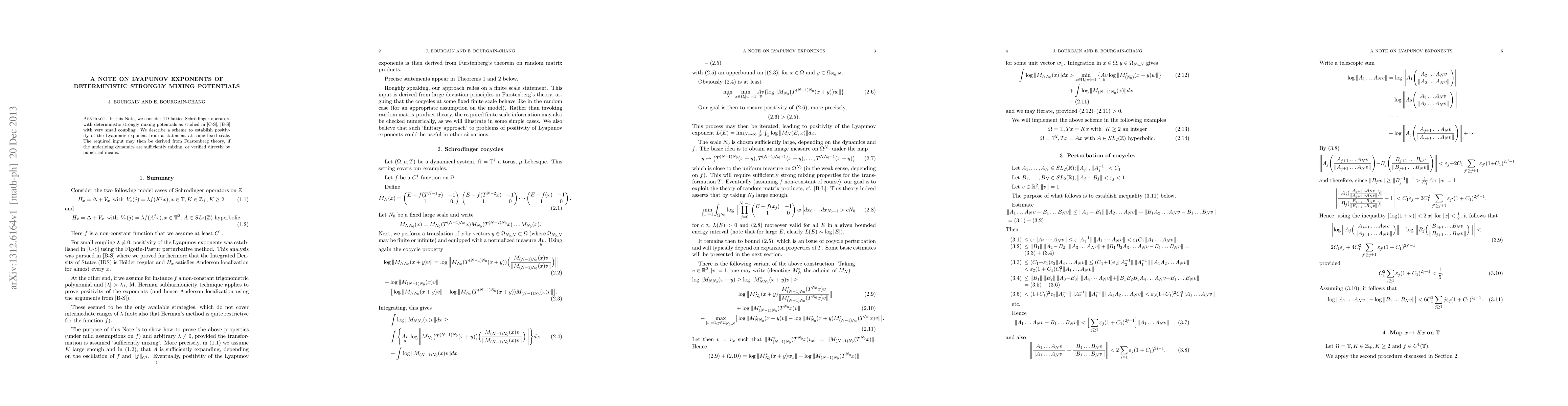 In this Note, we consider 1D lattice Schrodinger operators with deterministic strongly mixing potentials with very small coupling. We describe a scheme to establish positiv- ity of the Lyapunov exponent from a statement at some fixed scale. The required input may then be derived from Furstenberg theory, if the underlying dynamics are sufficiently mixing, or verified directly by numerical means.