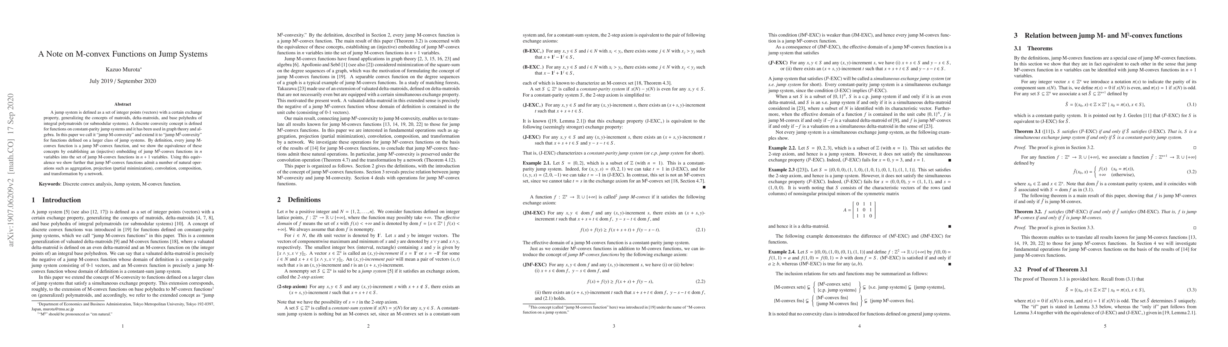 This paper introduces the concept of "jump M-convexity" and extends it to "jump M-natural-convexity" for functions on jump systems, generalizing matroids and delta-matroids. It establishes an equivalence between these concepts through an embedding and shows that jump M-natural-convex functions support operations like aggregation, projection, and convolution.