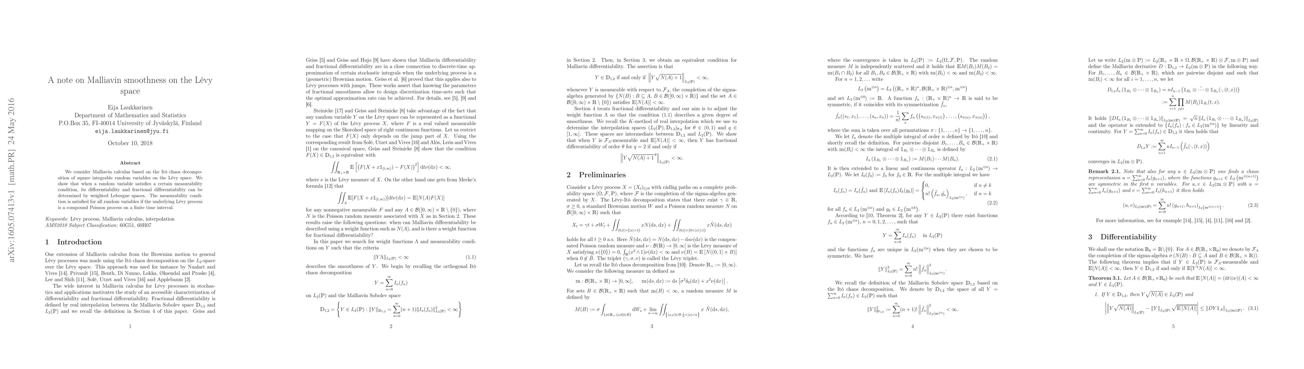 This paper explores the application of Malliavin calculus on the Lévy space using the Itô chaos decomposition, demonstrating that the differentiability and fractional differentiability of square integrable random variables can be determined via weighted Lebesgue spaces, with the measurability condition met for compound Poisson processes.