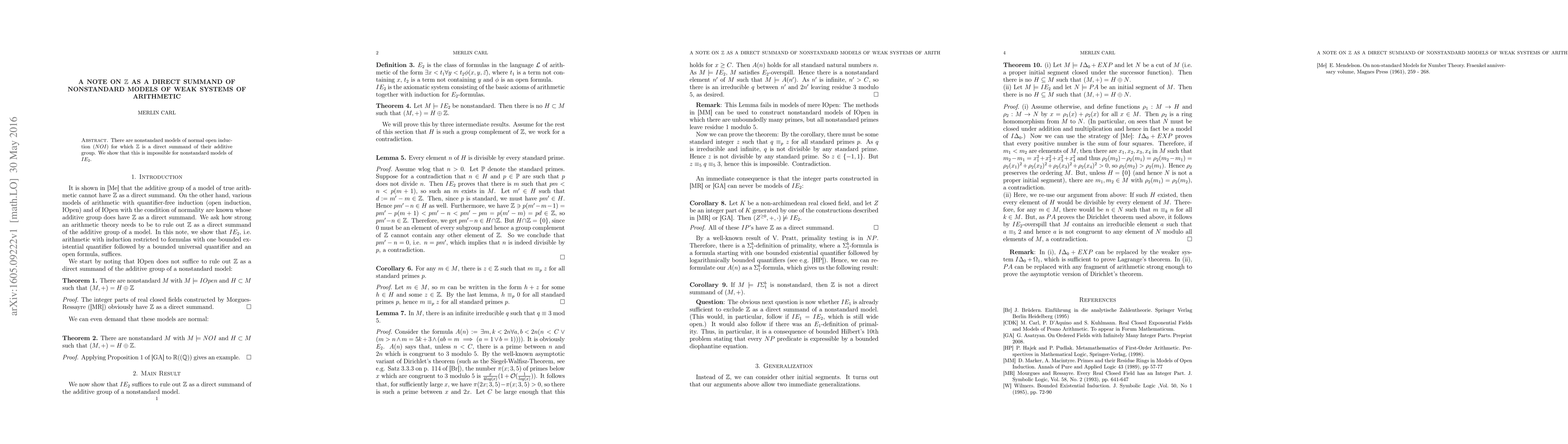 Summary: This paper demonstrates that $\mathbb{Z}$ cannot be a direct summand of the additive group in nonstandard models of the weak system $IE_2$, contrasting with nonstandard models of normal open induction ($NOI$) where such a summand is possible.
