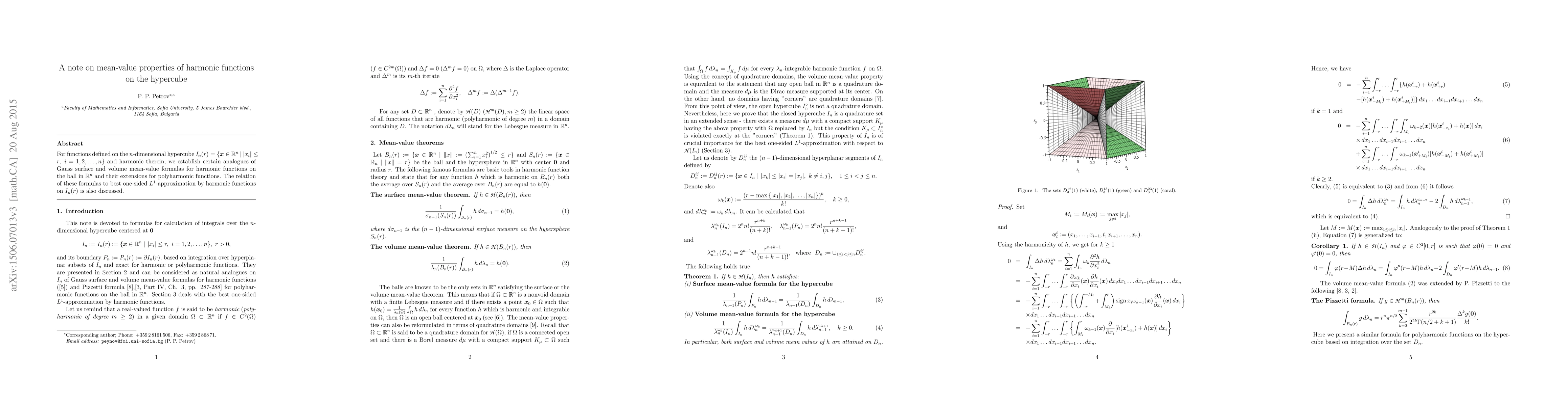 This paper establishes mean-value formulas for harmonic functions on hypercubes, extending Gauss surface and volume formulas to polyharmonic functions, with implications for $L^1$ approximation.