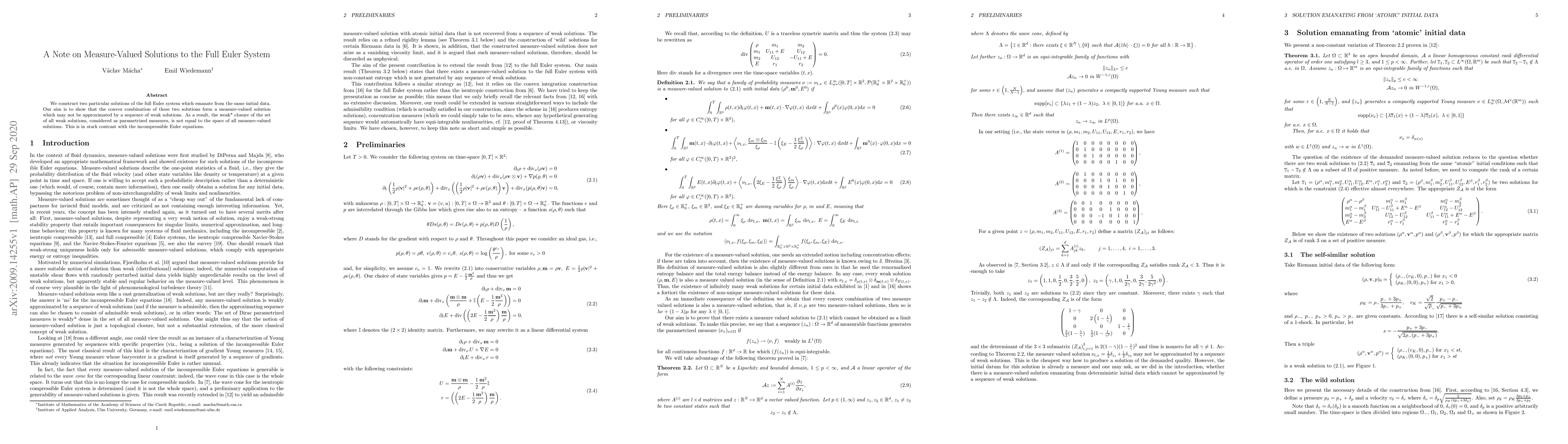 This paper constructs two distinct solutions to the full Euler system from the same initial data, demonstrating that their convex combination forms a measure-valued solution not approximable by weak solutions. It concludes that the weak* closure of weak solutions does not equal the space of measure-valued solutions, contrasting with the behavior in incompressible Euler equations.