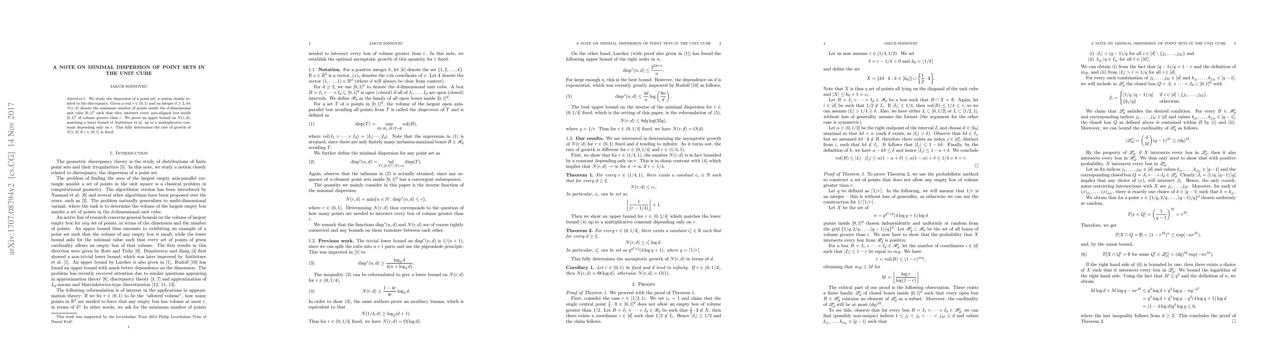 We study the dispersion of a point set, a notion closely related to the discrepancy. Given a real $r\in (0,1)$ and an integer $d\geq 2$, let $N(r,d)$ denote the minimum number of points inside the $d$-dimensional unit cube $[0,1]^d$ such that they intersect every axis-aligned box inside $[0,1]^d$ of volume greater than $r$. We prove an upper bound on $N(r,d)$, matching a lower bound of Aistleitner et al. up to a multiplicative constant depending only on $r$. This fully determines the rate of growth of $N(r,d)$ if $r\in(0,1)$ is fixed.