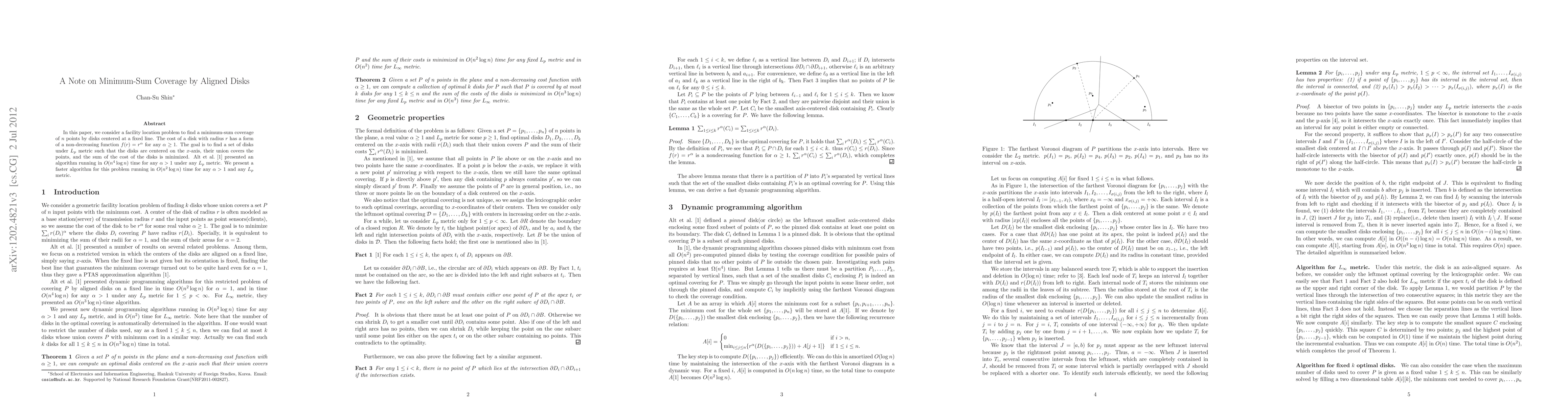This research contributes to the field of facility location problems by providing a more efficient algorithm for minimum-sum coverage by aligned disks, which has applications in various optimization and resource allocation scenarios.