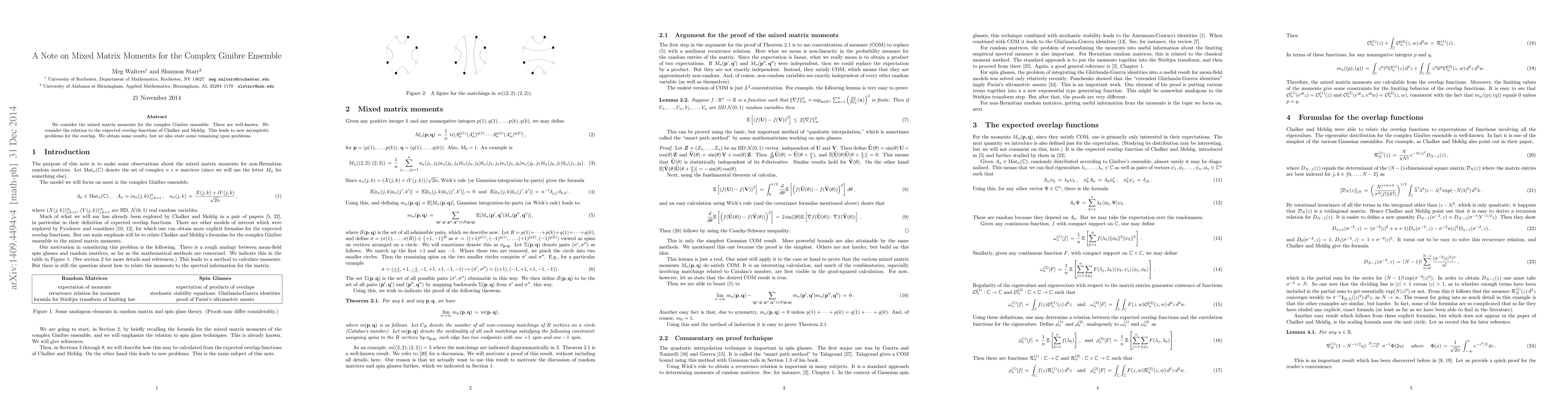 This paper investigates mixed matrix moments in the complex Ginibre ensemble, relating them to Chalker and Mehlig's expected overlap functions, and identifies new asymptotic problems for the overlap, presenting some results while acknowledging remaining open questions.