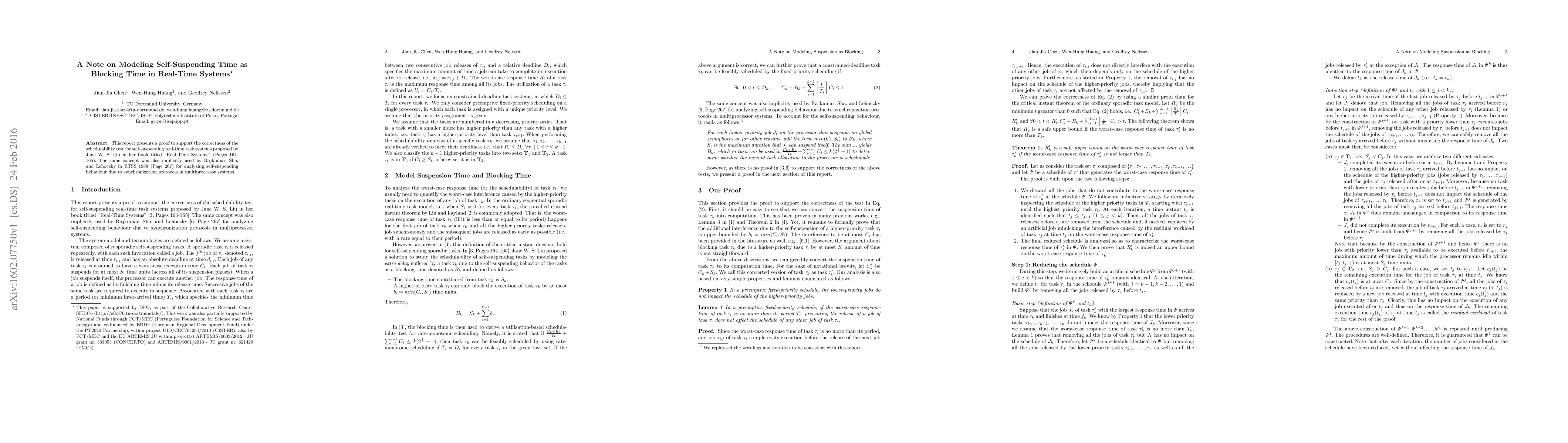 This paper proves the correctness of a schedulability test for self-suspending real-time task systems, ensuring proper analysis of synchronization protocols in multiprocessor systems. The study builds on existing work by Liu and others to provide a foundation for understanding self-suspending behavior in real-time systems.