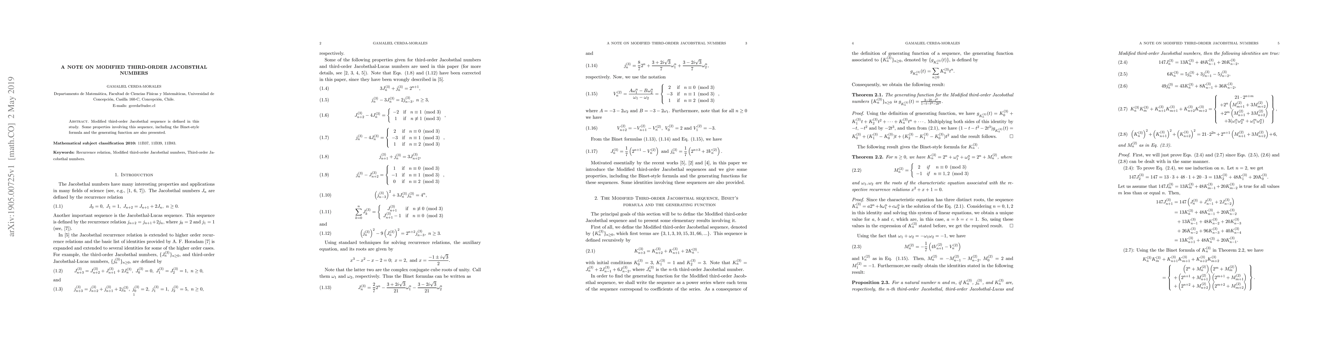 This paper introduces the modified third-order Jacobsthal sequence, providing a Binet-style formula and a generating function to explore its properties. The study aims to deepen the understanding of this newly defined sequence.