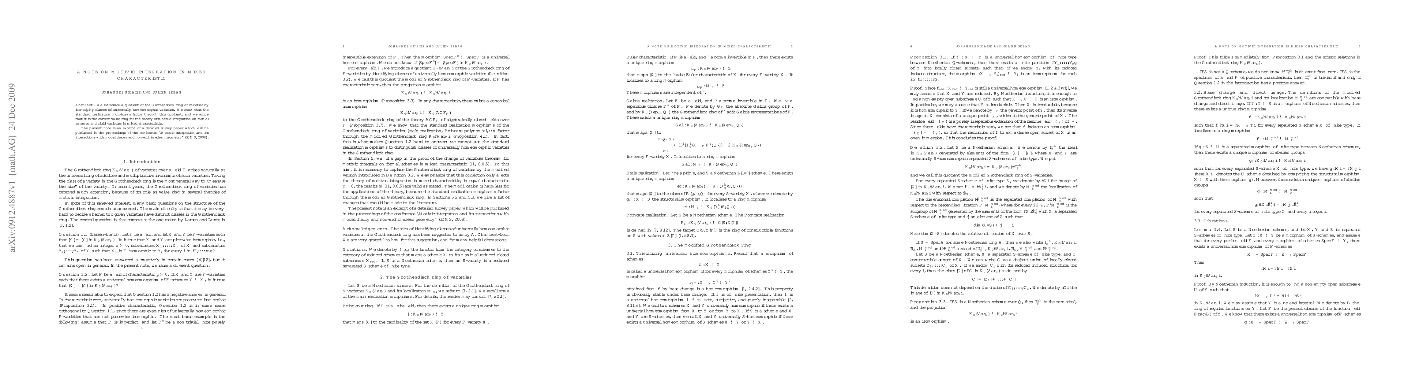 We introduce a quotient of the Grothendieck ring of varieties by identifying classes of universally homeomorphic varieties. We show that the standard realization morphisms factor through this quotient, and we argue that it is the correct value ring for the theory of motivic integration on formal schemes and rigid varieties in mixed characteristic. The present note is an excerpt of a detailed survey paper which will be published in the proceedings of the conference "Motivic integration and its interactions with model theory and non-archimedean geometry" (ICMS, 2008).