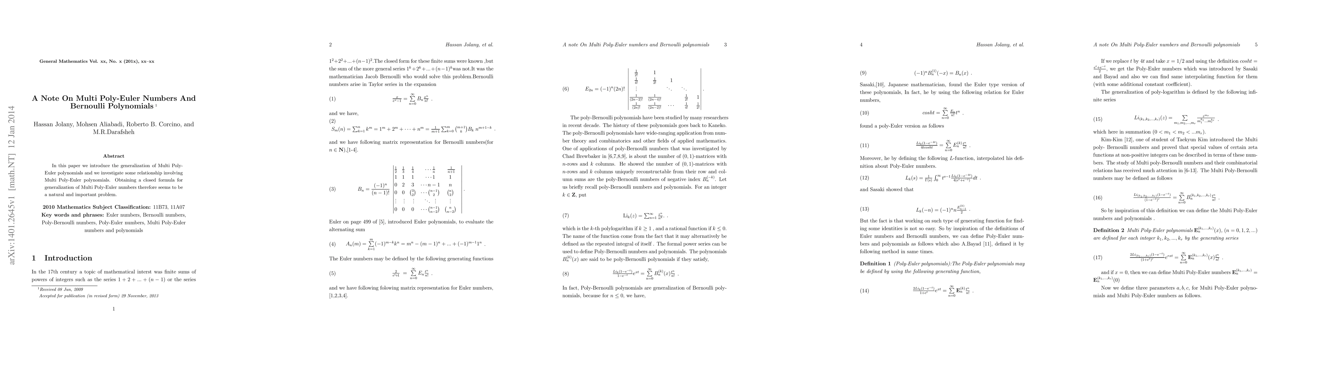 Summary: This paper introduces generalized Multi Poly-Euler polynomials and explores their relationships, aiming to derive a closed formula for the corresponding Multi Poly-Euler numbers, which is considered a significant mathematical problem.