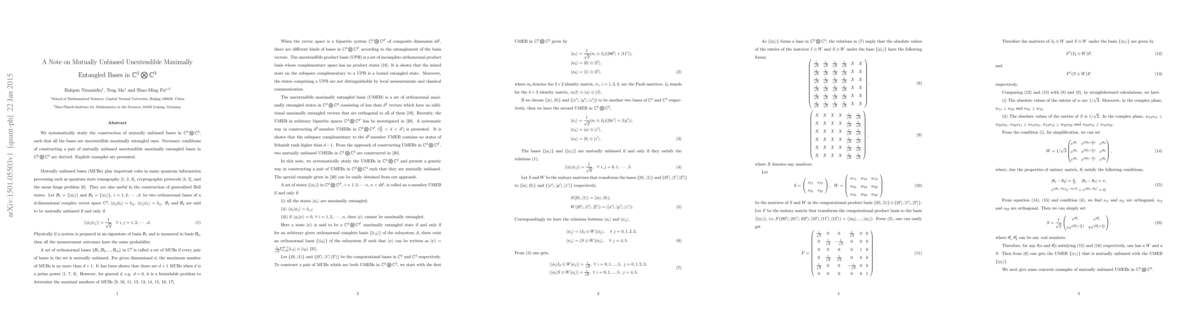 This paper explores the construction of mutually unbiased bases in $\mathbb{C}^{2}\bigotimes\mathbb{C}^{3}$, focusing on unextendible maximally entangled states. It derives necessary conditions for such bases and provides explicit examples.