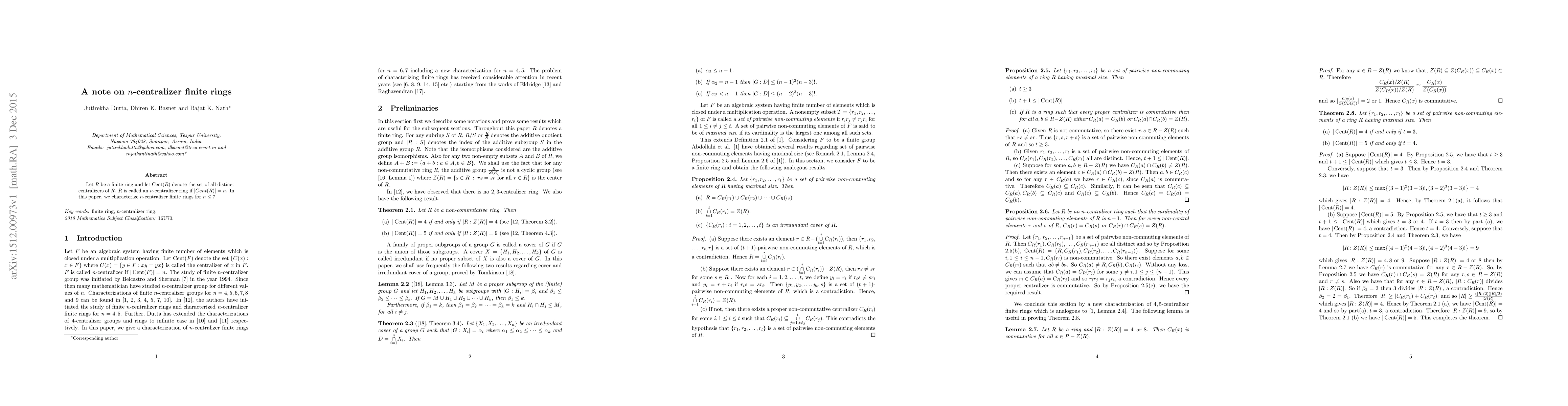 This paper characterizes finite rings $R$ where the number of distinct centralizers, denoted $\Cent(R)$, equals a fixed integer $n$ for $n \leq 7$. The study provides detailed insights into the structure of such $n$-centralizer finite rings.