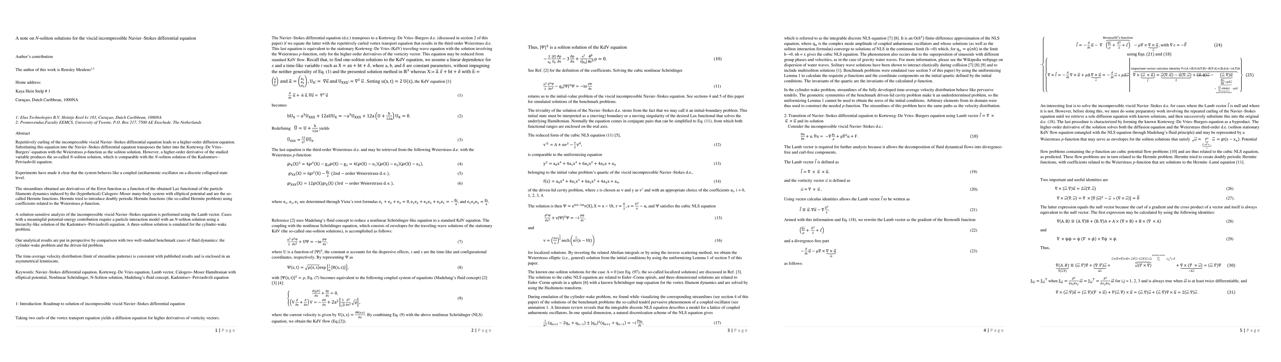 Repetitive curling of the incompressible viscid Navier-Stokes differential equation leads to a higher-order diffusion equation. Substituting this equation into the Navier-Stokes differential equation transposes the latter into the Korteweg-de Vries-Burgers equation with the Weierstrass p-function as the soliton solution. However, a higher-order derivative of the studied variable produces the so-called N-soliton solution, which is comparable to the N-soliton solution of the Kadomtsev-Petviashvili equation.
