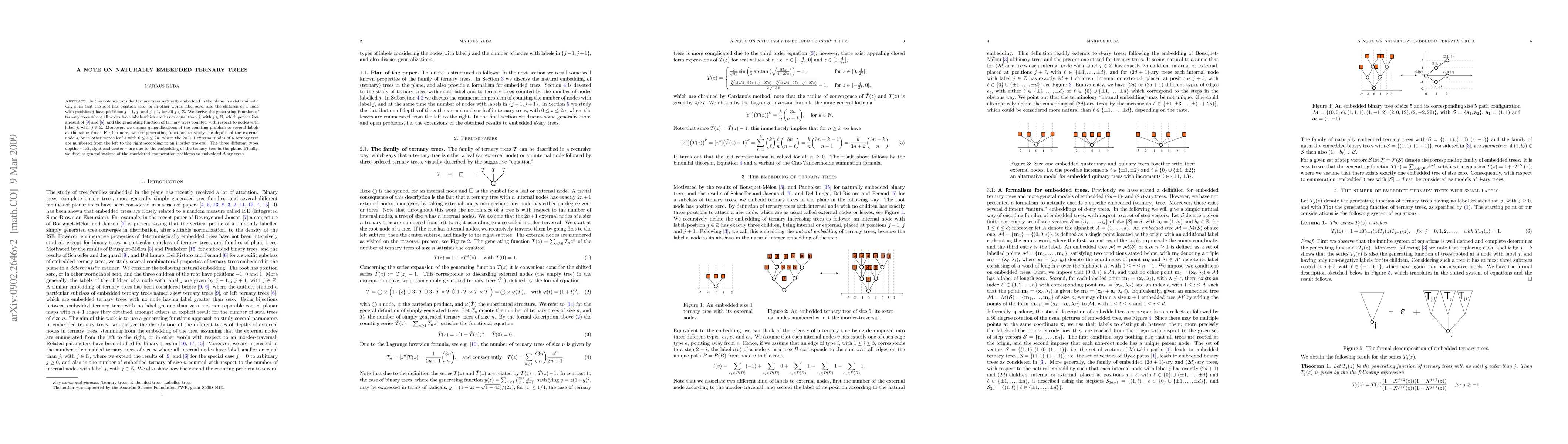 This paper explores naturally embedded ternary trees in the plane with a deterministic embedding pattern, deriving generating functions for counting trees based on node labels and depths of leaves. It also generalizes these enumeration problems to $d$-ary trees and discusses different types of leaf depths due to the planar embedding.