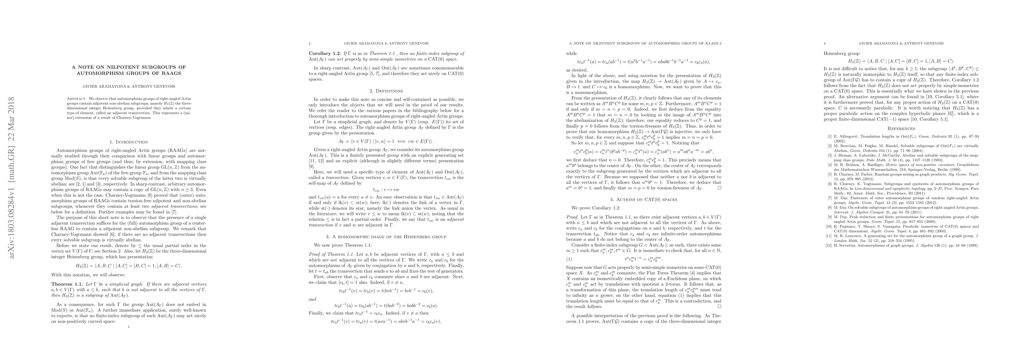 We observe that automorphism groups of right-angled Artin groups contain nilpotent non-abelian subgroups, namely $H_3(\mathbb{Z})$ the three-dimensional integer Heisenberg group, provided they admit a certain type of element, called an adjacent transvection. This represents a (minor) extension of a result of Charney-Vogtmann.