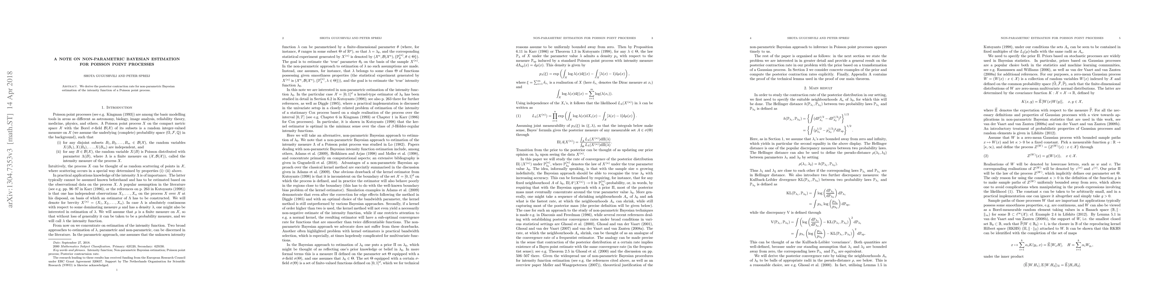 Summary: The paper derives the posterior contraction rate for non-parametric Bayesian estimation of the intensity function of a Poisson point process, providing insights into the convergence behavior of the estimation method.