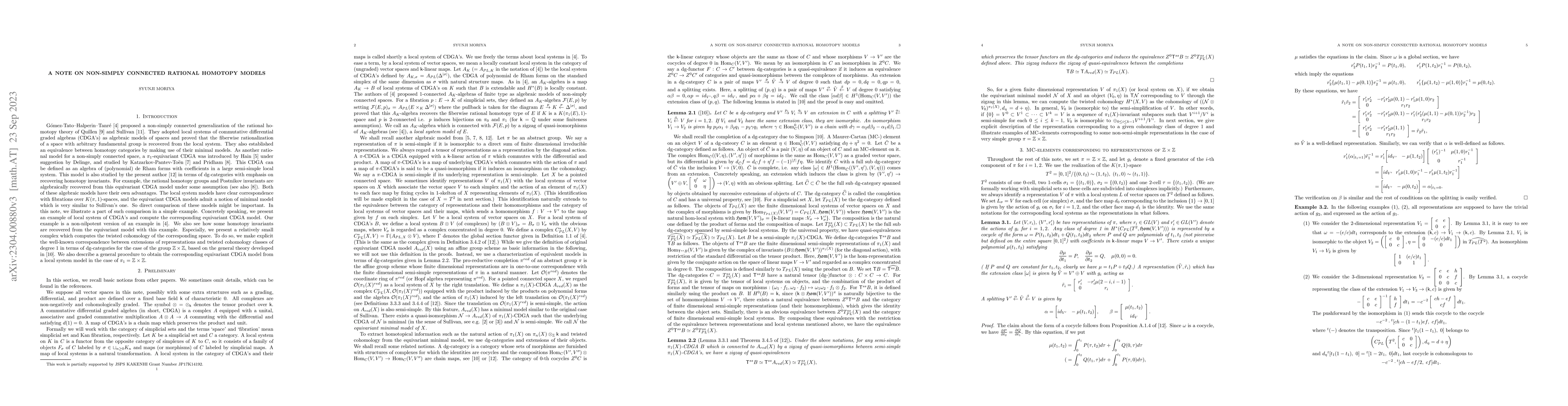 This paper explores non-simply connected rational homotopy models using local systems of commutative differential graded algebras (CDGA's) and compares them with $\pi_1$-equivariant CDGA models. It presents a non-nilpotent version of a previous example and computes the corresponding equivariant CDGA, illustrating the recovery of homotopy invariants from the model.