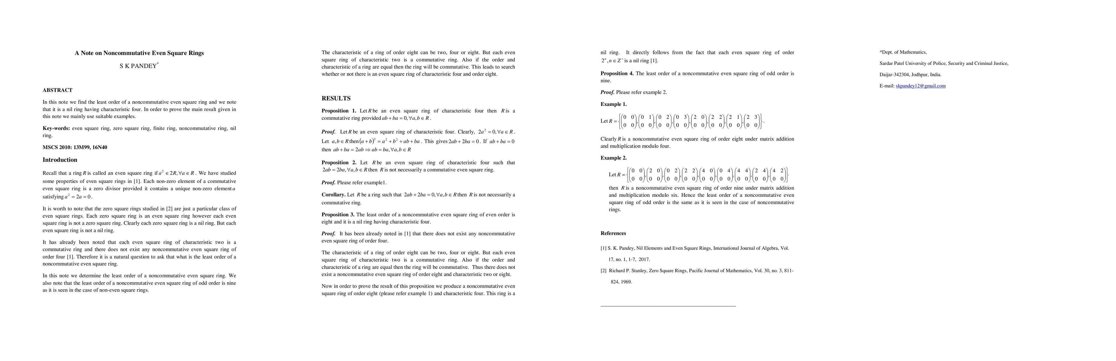 Researchers found that the least order of a noncommutative even square ring is 16 and it has characteristic four, making it a nil ring.
