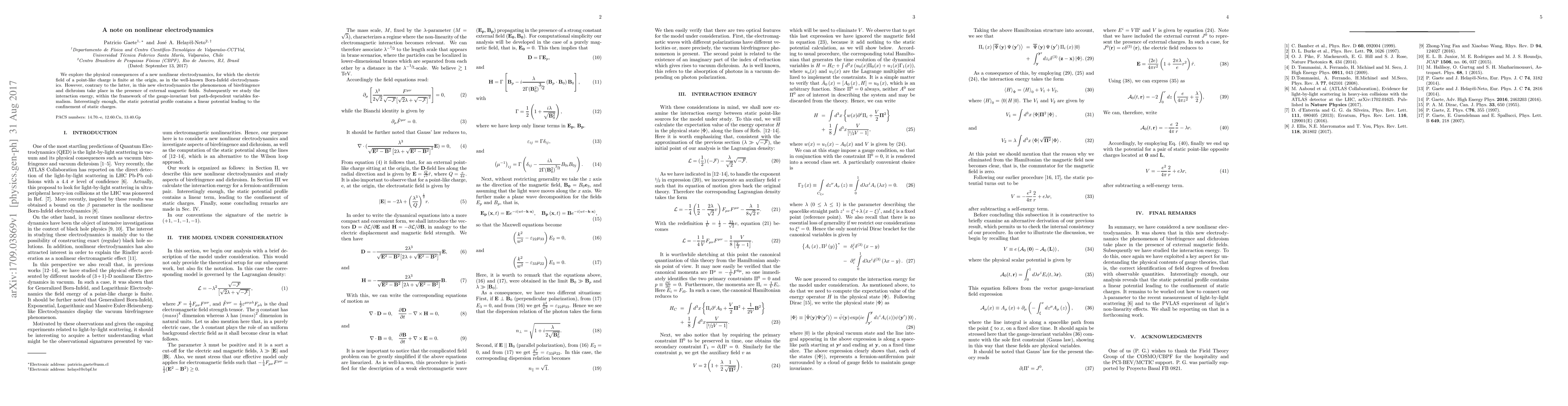 We explore the physical consequences of a new nonlinear electrodynamics, for which the electric field of a point-like charge is finite at the origin, as in the well-known Born-Infeld electrodynamics. However, contrary to the latter, in this new electrodynamics the phenomenon of birefringence and dichroism take place in the presence of external magnetic fields. Subsequently we study the interaction energy, within the framework of the gauge-invariant but path-dependent variables formalism. Interestingly enough, the static potential profile contains a linear potential leading to the confinement of static charges.