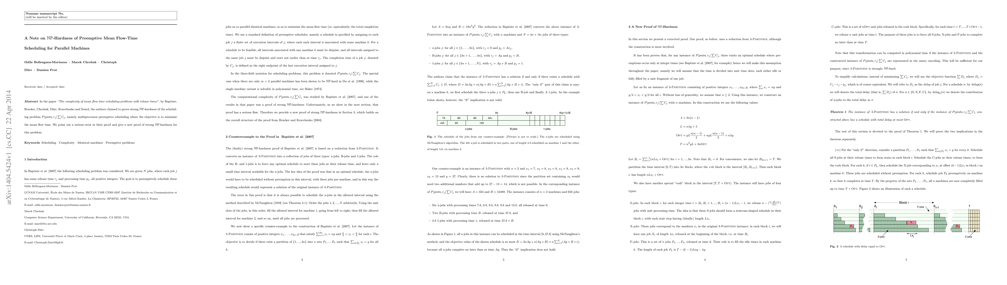 In the paper "The complexity of mean flow time scheduling problems with release times", by Baptiste, Brucker, Chrobak, D\"urr, Kravchenko and Sourd, the authors claimed to prove strong NP-hardness of the scheduling problem $P|pmtn,r_j|\sum C_j$, namely multiprocessor preemptive scheduling where the objective is to minimize the mean flow time. We point out a serious error in their proof and give a new proof of strong NP-hardness for this problem.