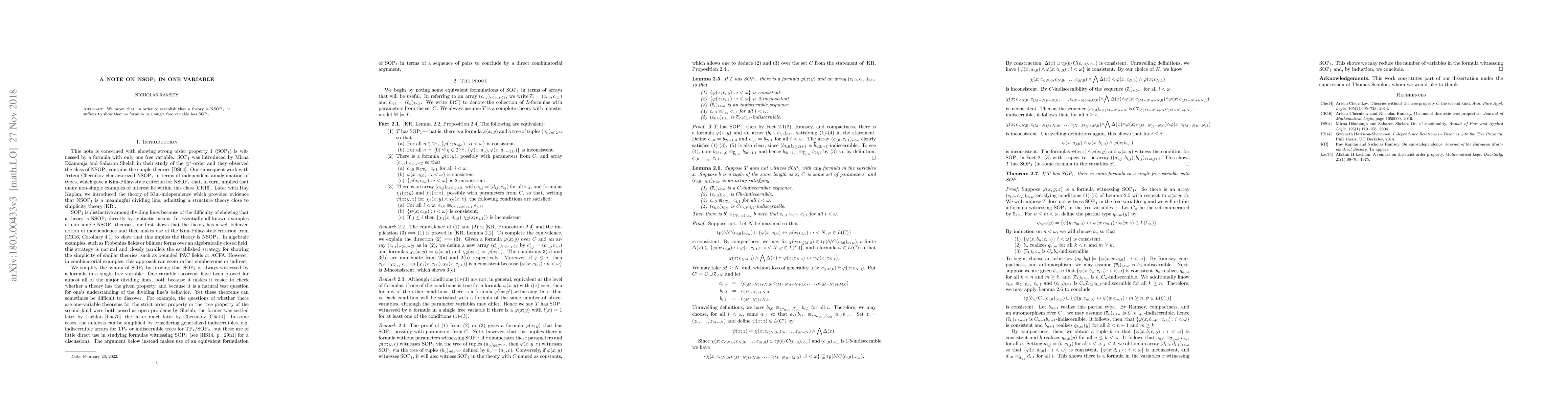 Researchers prove that a theory is NSOP$_{1}$ if no formula with one free variable has SOP$_{1}$. This simplifies the condition for establishing NSOP$_{1}$ in one variable theories.