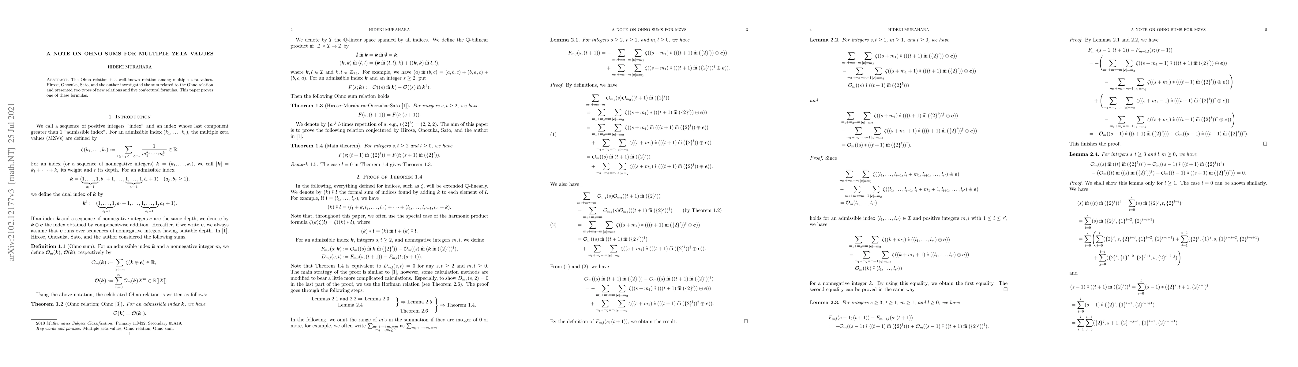 The paper investigates new relations associated with the Ohno relation among multiple zeta values, proving one of five conjectural formulas previously proposed by Hirose, Onozuka, Sato, and the author.