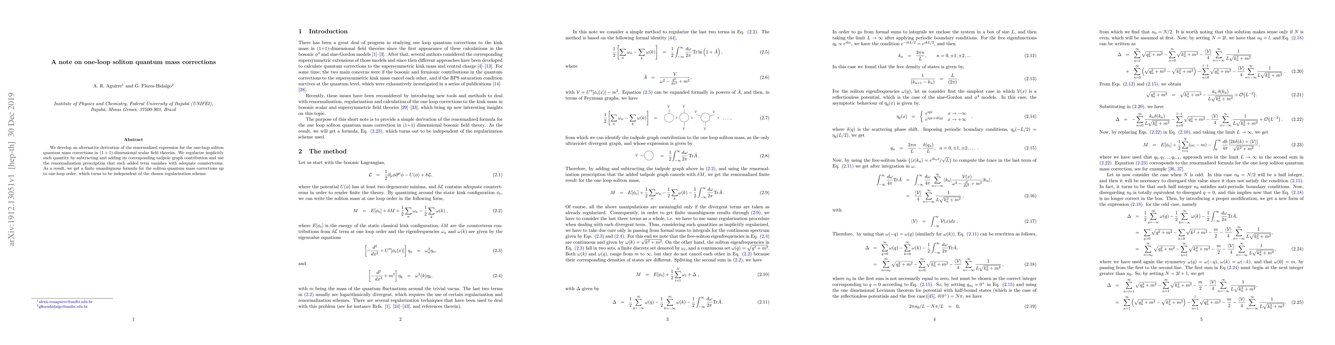 This paper presents an alternative derivation for the renormalized one-loop soliton quantum mass corrections in (1+1)-dimensional scalar field theories, achieving a finite and unambiguous formula independent of the regularization scheme by subtracting and adding corresponding tadpole graph contributions.