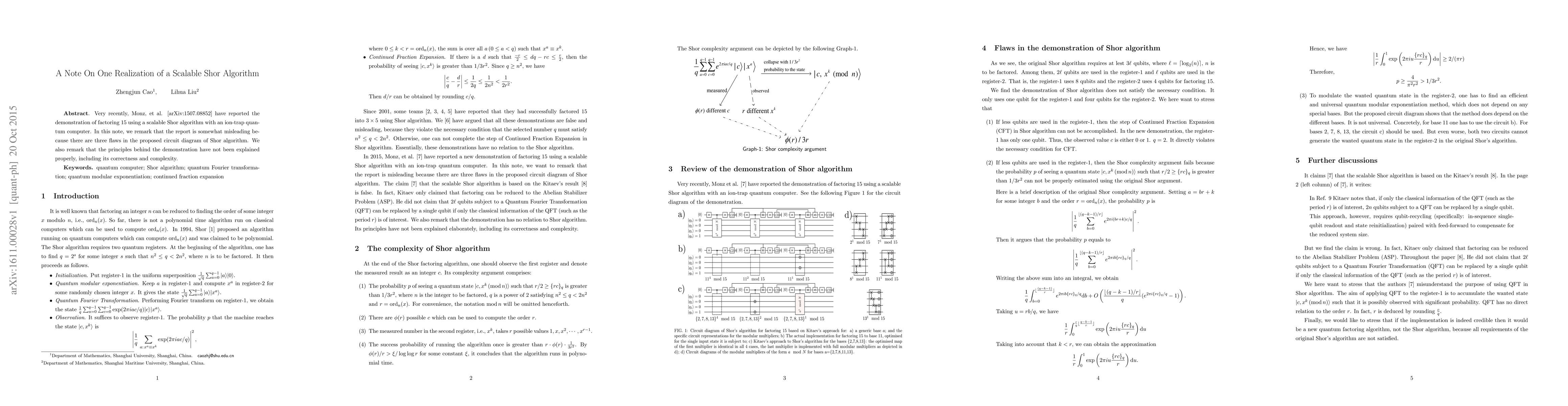 Very recently, Monz, et al. [arXiv:1507.08852] have reported the demonstration of factoring 15 using a scalable Shor algorithm with an ion-trap quantum computer. In this note, we remark that the report is somewhat misleading because there are three flaws in the proposed circuit diagram of Shor algorithm. We also remark that the principles behind the demonstration have not been explained properly, including its correctness and complexity.
