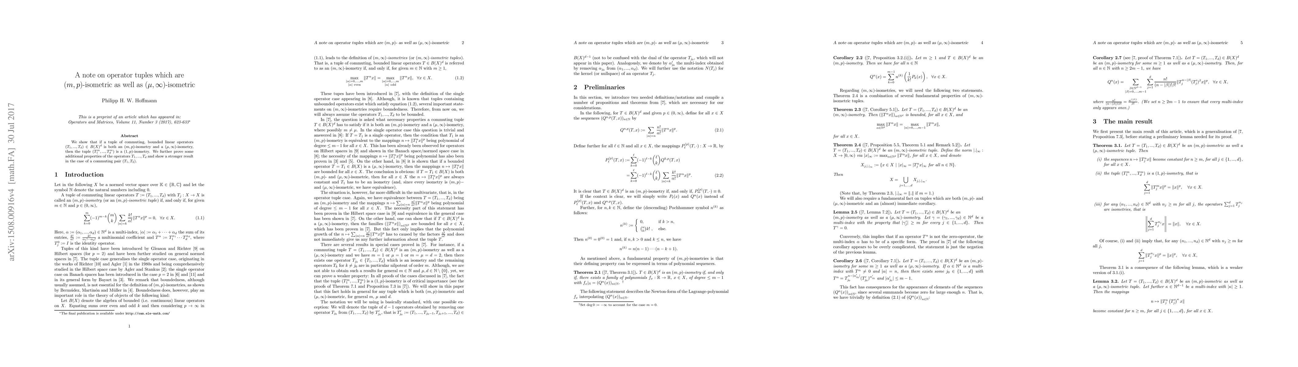 We show that if a tuple of commuting, bounded linear operators $(T_1,...,T_d) \in B(X)^d$ is both an $(m,p)$-isometry and a $(\mu,\infty)$-isometry, then the tuple $(T_1^m,...,T_d^m)$ is a $(1,p)$-isometry. We further prove some additional properties of the operators $T_1,...,T_d$ and show a stronger result in the case of a commuting pair $(T_1,T_2)$.