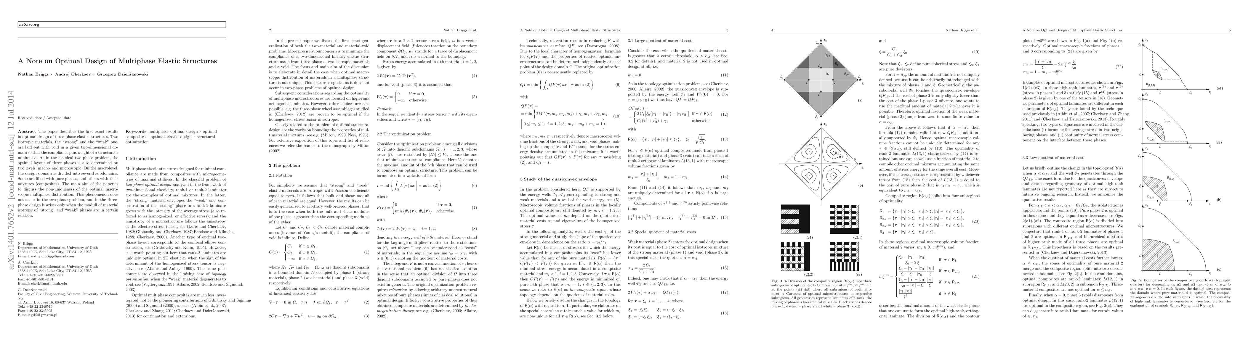 The paper describes the first exact results in optimal design of three-phase elastic structures. Two isotropic materials, the "strong" and the "weak" one, are laid out with void in a given two-dimensional domain so that the compliance plus weight of a structure is minimized. As in the classical two-phase problem, the optimal layout of three phases is also determined on two levels: macro- and microscopic. On the macrolevel, the design domain is divided into several subdomains. Some are filled with pure phases, and others with their mixtures (composites). The main aim of the paper is to discuss the non-uniqueness of the optimal macroscopic multiphase distribution. This phenomenon does not occur in the two-phase problem, and in the three-phase design it arises only when the moduli of material isotropy of "strong" and "weak" phases are in certain relation.