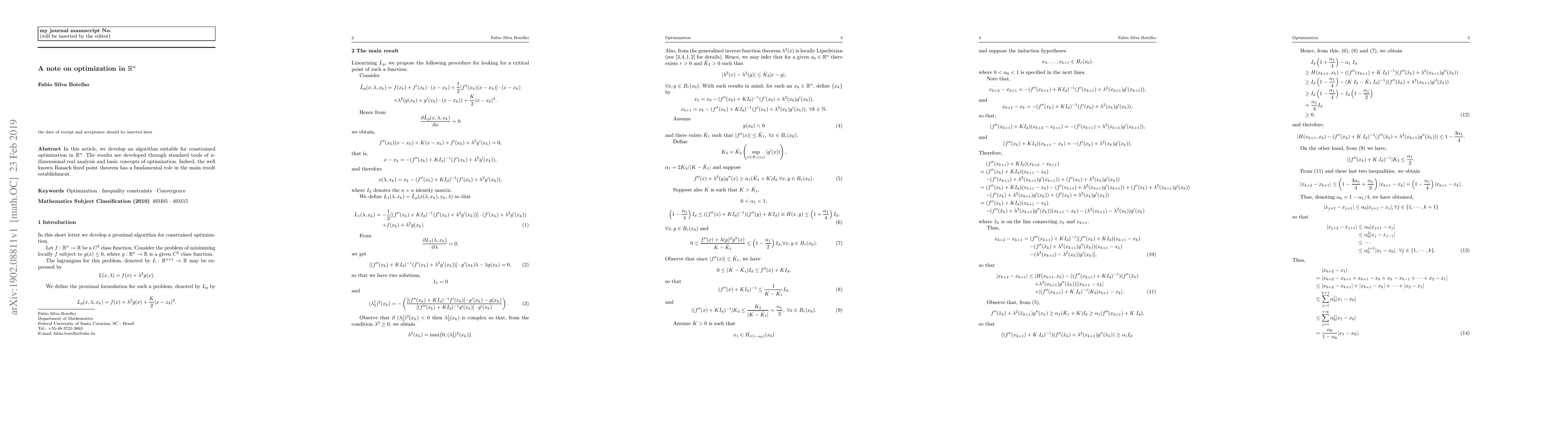 This paper develops an algorithm for constrained optimization in n-dimensional space, leveraging the Banach fixed point theorem to achieve a key result.