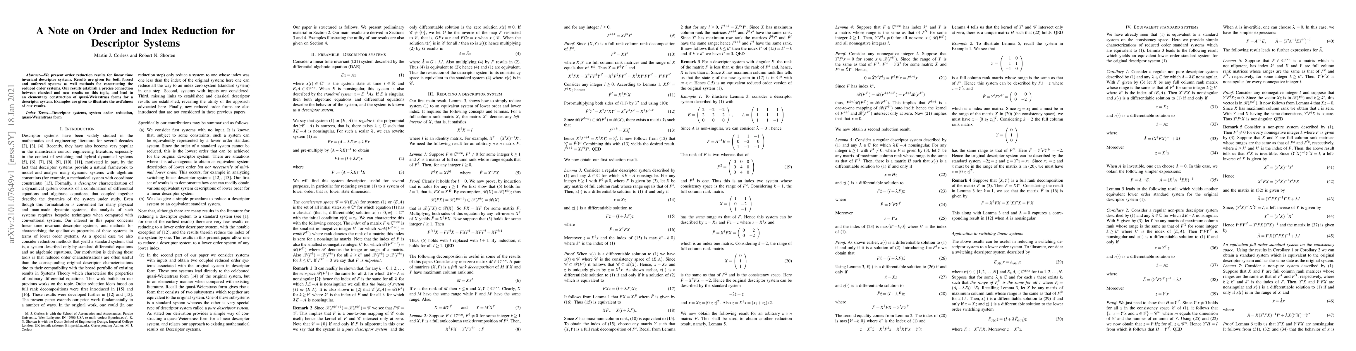 This paper presents methods for reducing the order of linear time-invariant descriptor systems, providing techniques for both forced and unforced systems. It also establishes a clear link between classical and new results, facilitating the construction of quasi-Weierstrass forms and includes examples to demonstrate practical applications.