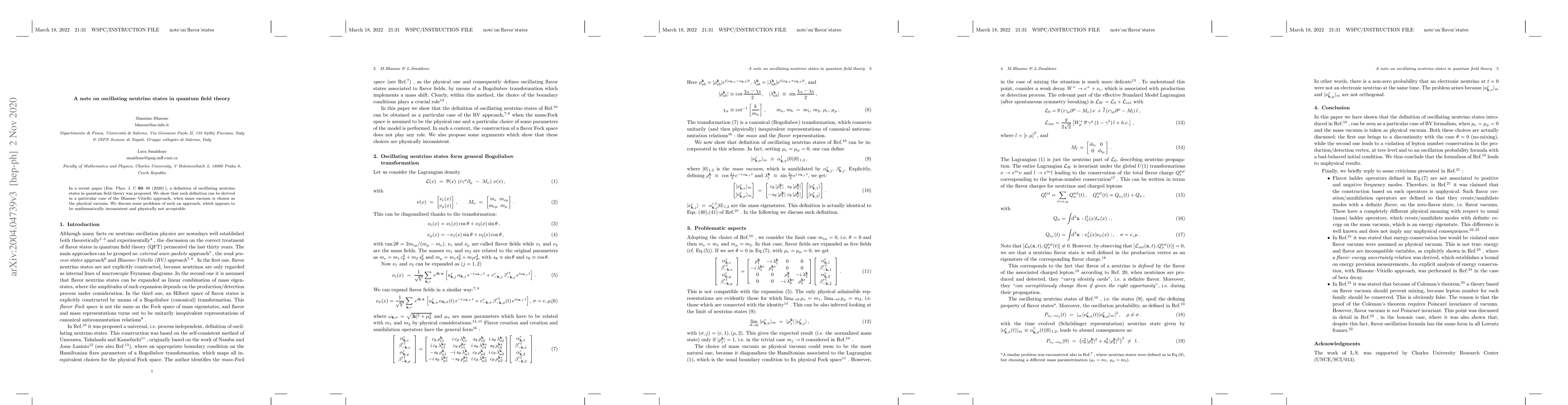In a recent paper (Eur. Phys. J. C 80: 68 (2020).), a definition of oscillating neutrino states in quantum field theory was proposed. We show that such definition can be derived in a particular case of the Blasone-Vitiello approach, when mass vacuum is chosen as the physical vacuum. We discuss some problems of such an approach, which appears to be mathematically inconsistent and physically not acceptable.