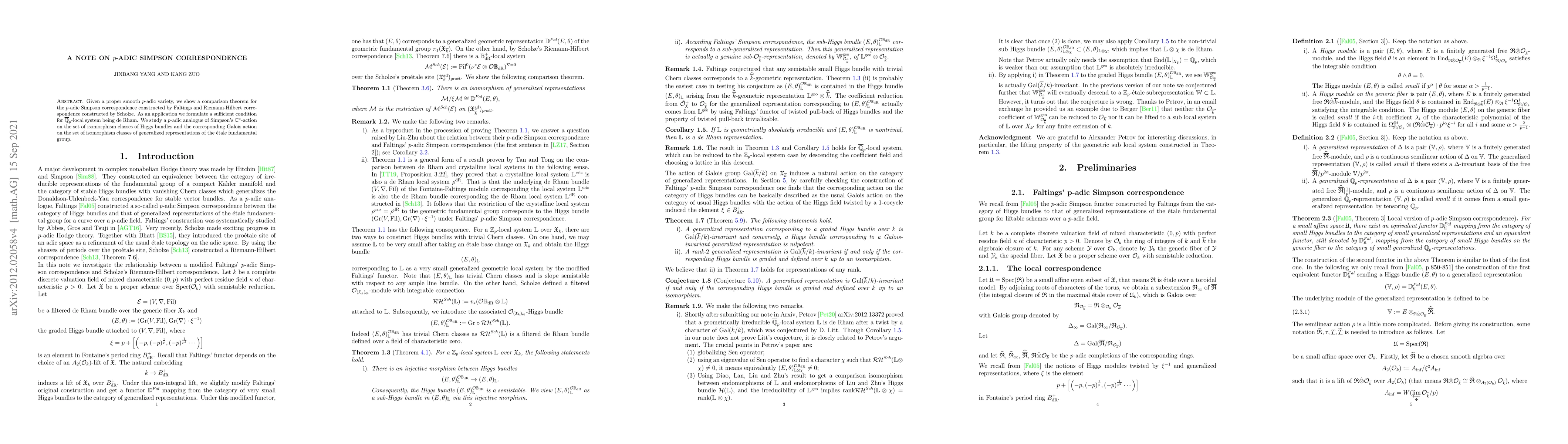 The paper establishes a comparison theorem for the p-adic Simpson correspondence and the Riemann-Hilbert correspondence, utilizing Faltings' and Scholze's constructions respectively on proper smooth p-adic varieties.