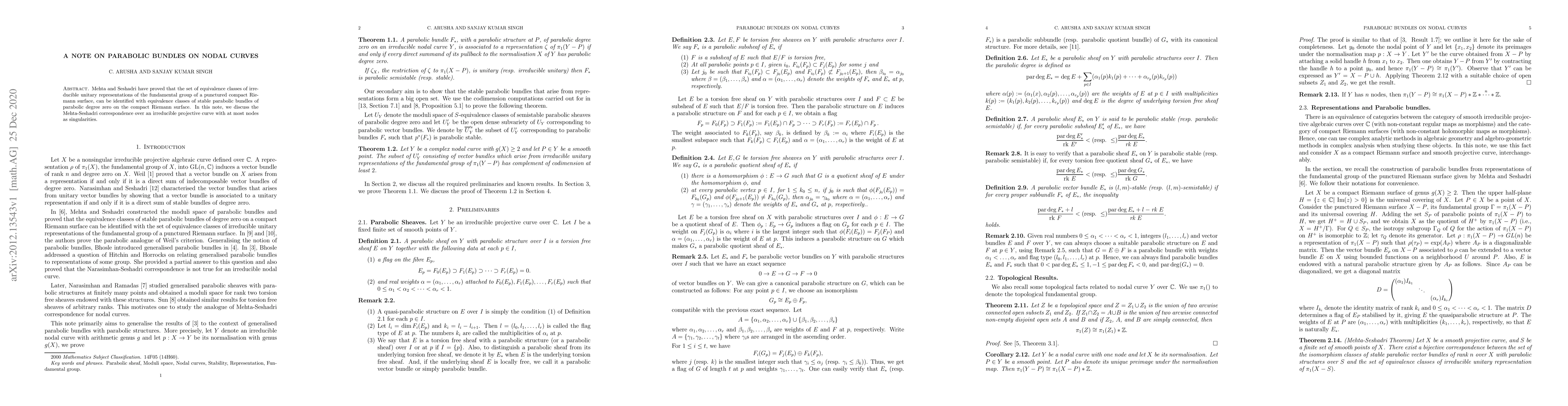 This paper extends the relationship between certain mathematical structures called parabolic bundles and group representations to more complex curves with nodes, broadening understanding in algebraic geometry. It explores how these connections hold even when the underlying shape has singularities like nodes.