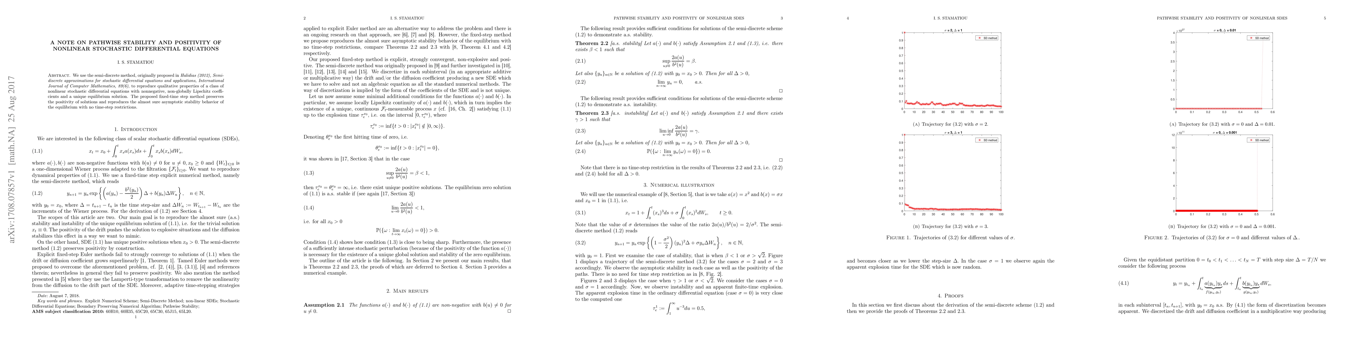 This paper employs a semi-discrete method to analyze the pathwise stability and positivity of nonlinear stochastic differential equations with nonnegative, non-globally Lipschitz coefficients. The proposed fixed-time step approach maintains solution positivity and accurately reproduces the equilibrium's almost sure asymptotic stability without time-step constraints.