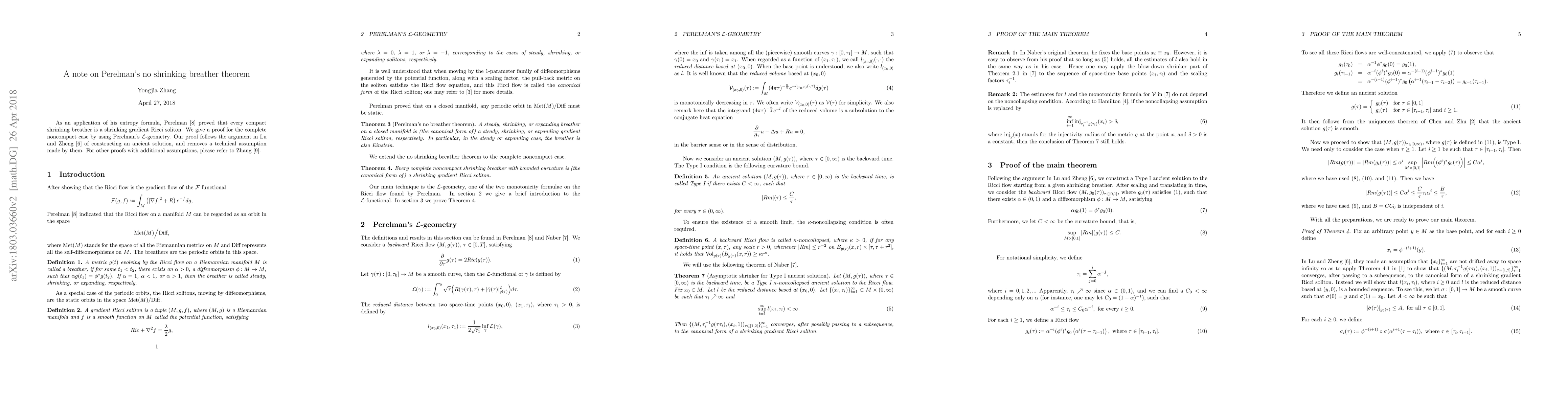 As an application of his entropy formula, Perelman proved that every compact shrinking breather is a shrinking gradient Ricci soliton. We give a proof for the complete noncompact case by using Perelman's $\mathcal{L}$-geometry. Our proof follows the argument in Lu and Zheng of constructing an ancient solution, and removes a technical assumption made by them.