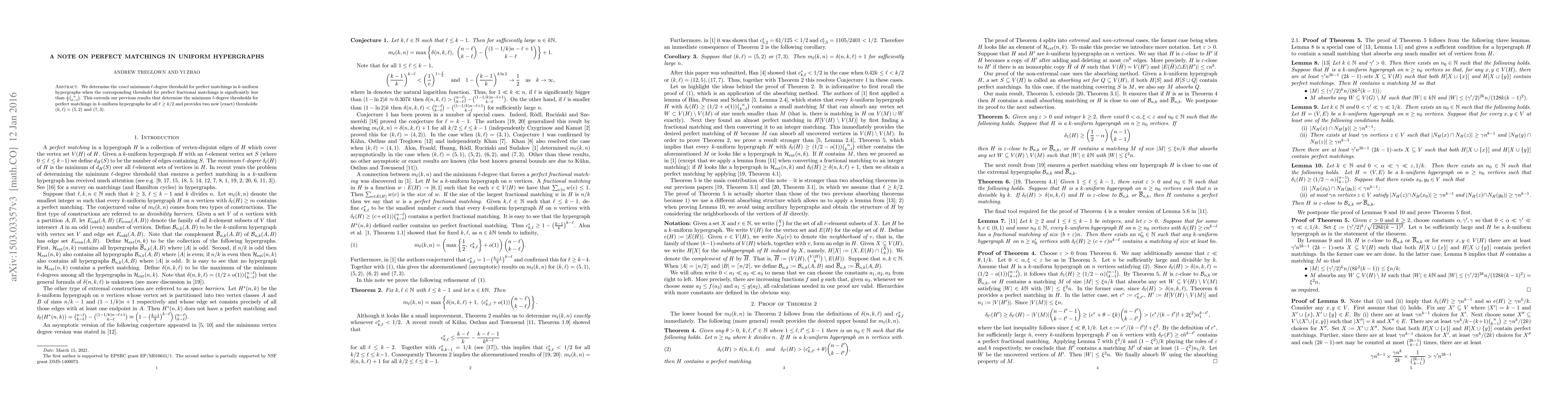 This paper establishes the precise minimum $\ell$-degree threshold for perfect matchings in $k$-uniform hypergraphs, extending previous results and providing exact thresholds for $(k,\ell)=(5,2)$ and $(7,3)$, where the threshold for perfect fractional matchings is notably lower than $\frac{1}{2} \binom{n}{k-\ell}$.
